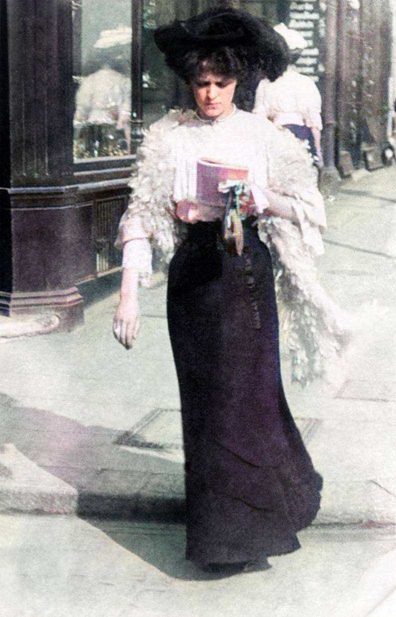 爱德华时代的设计趋势围绕着S形曲线,紧身胸衣创造了S形轮廓,这与维多利亚时代的沙漏形状有所不同。S形紧身胸衣迫使臀部向后,胸部向前。理想的女性形象是一个拥有鸽子形单胸的成熟女性。
