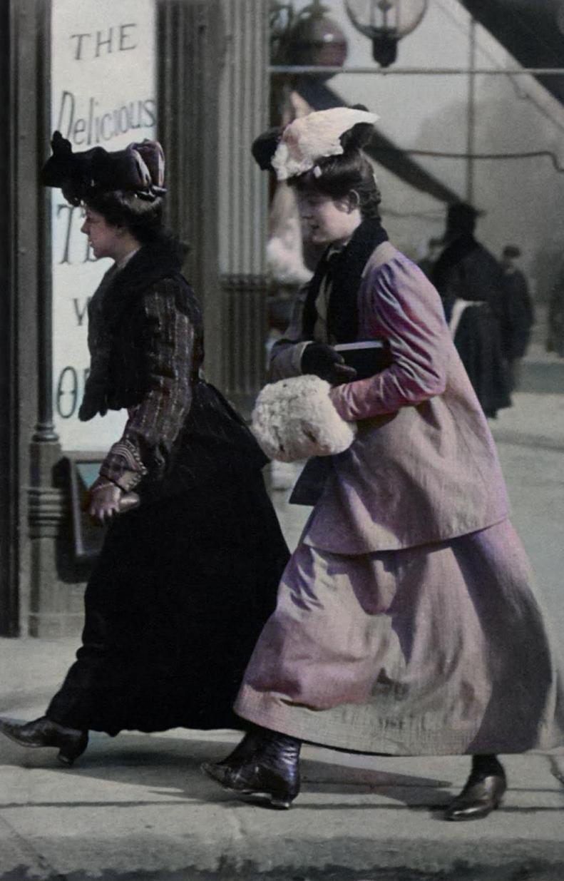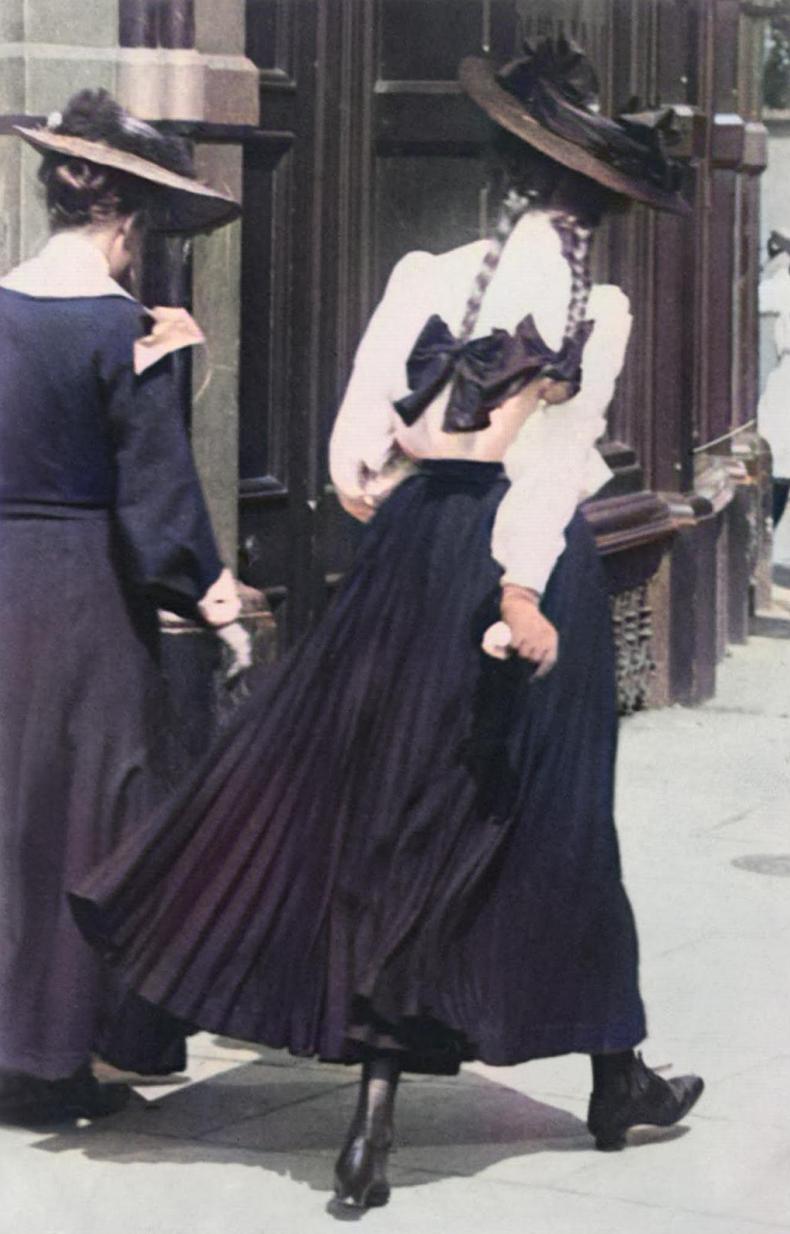 其他户外服装包括与配套的夹克和狐狸皮一起穿的长及脚踝的裙子。新一代的帽子也出现在这个时代。其中受欢迎的两顶帽子是汽车帽和水手帽,前者是为了在骑马时使用,后者是网球比赛和其他活动的。