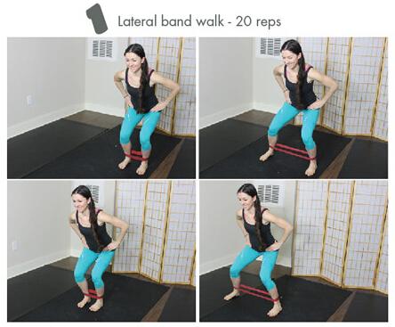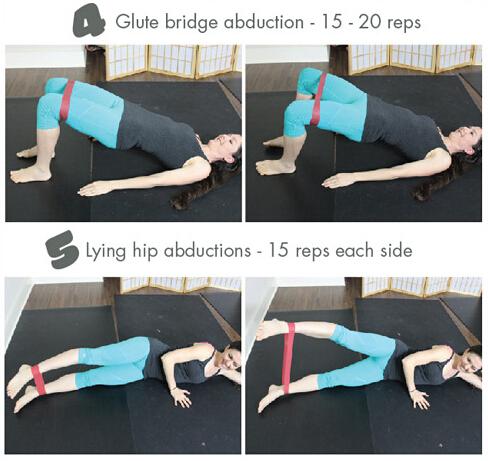 ④ 桥式外展。以桥式开始,双腿向外拉伸,做15-20次。