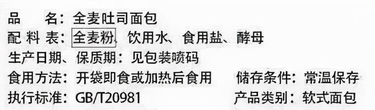 面包,推荐全麦面包,同样,不能只看包装表面,要看它的配料表,第一位的是否是全麦粉,(含小麦粉,麸皮,小麦胚芽),如果排在第一的是小麦粉,那就不是全麦面包,为什么要选择全麦,因为所含的麸皮和胚芽含有较多的膳食纤维。关于膳食纤维的好处,上面已经说过了。