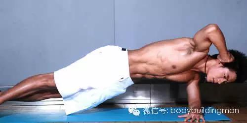 7,半侧腰转体:侧卧,单手肘关节支撑地面,另一手轻轻触头,身体离地保持一条直线。慢慢转动身体90度面向地板。主要腹斜肌,腹横肌(就是肚子里面深层的肌肉了)。