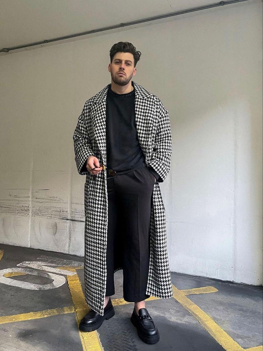 有小肚腩的男士,在冬季穿搭时,既别选择过于紧身的款式,也不要过分的扩大版型,以合身为主更有利于造型的发挥。