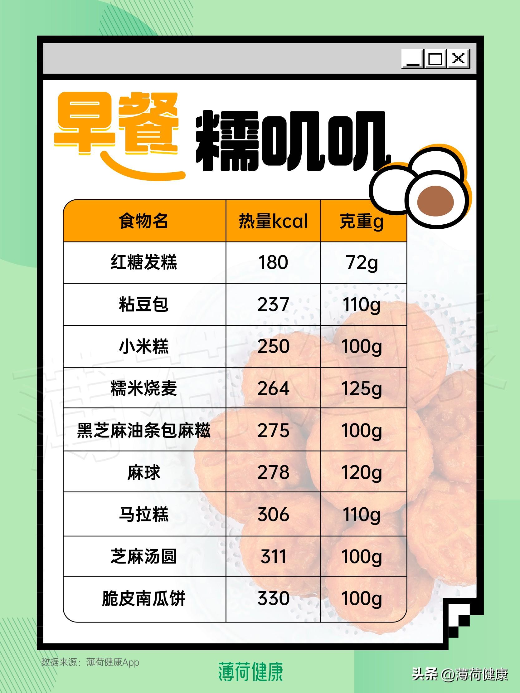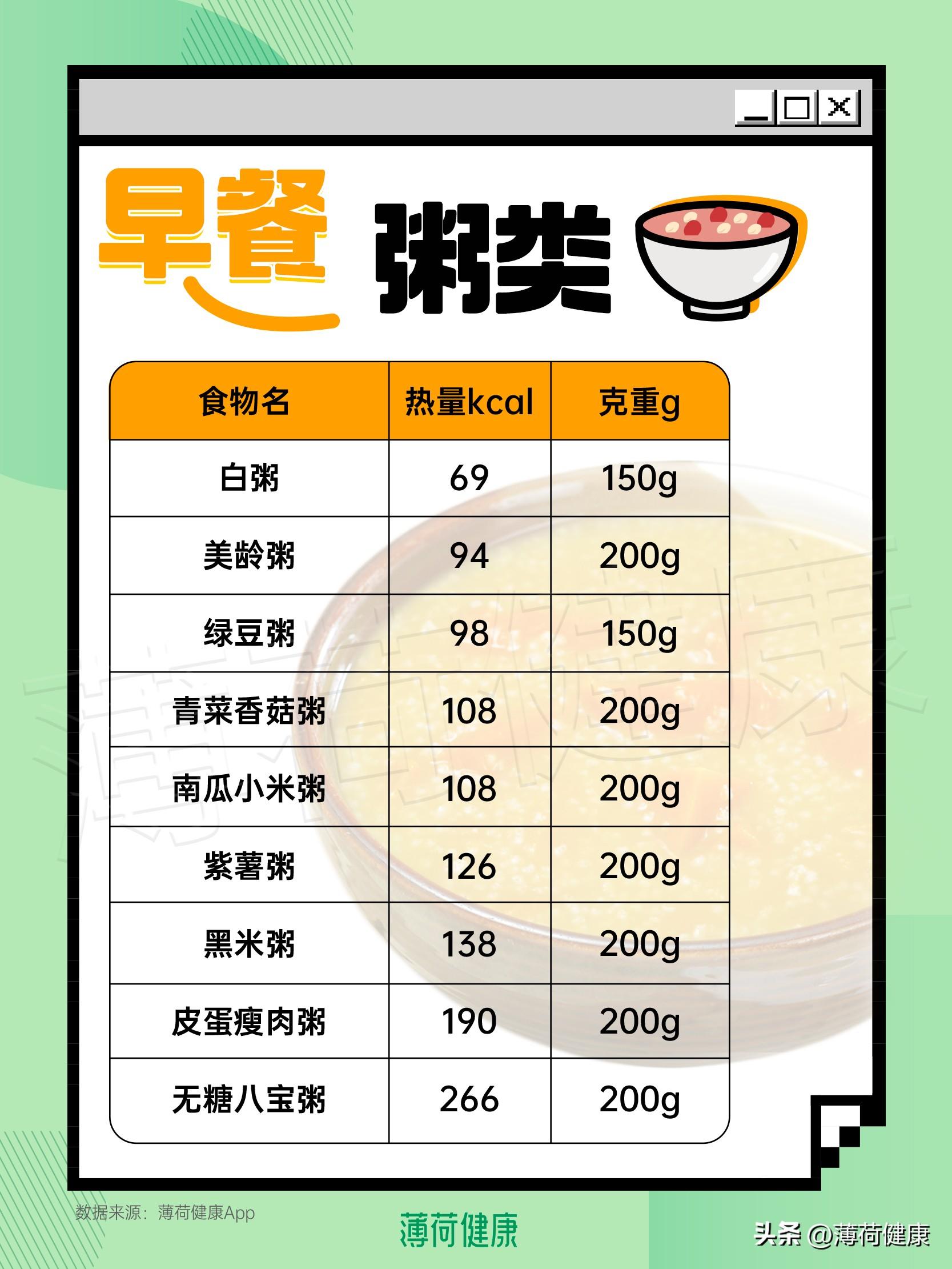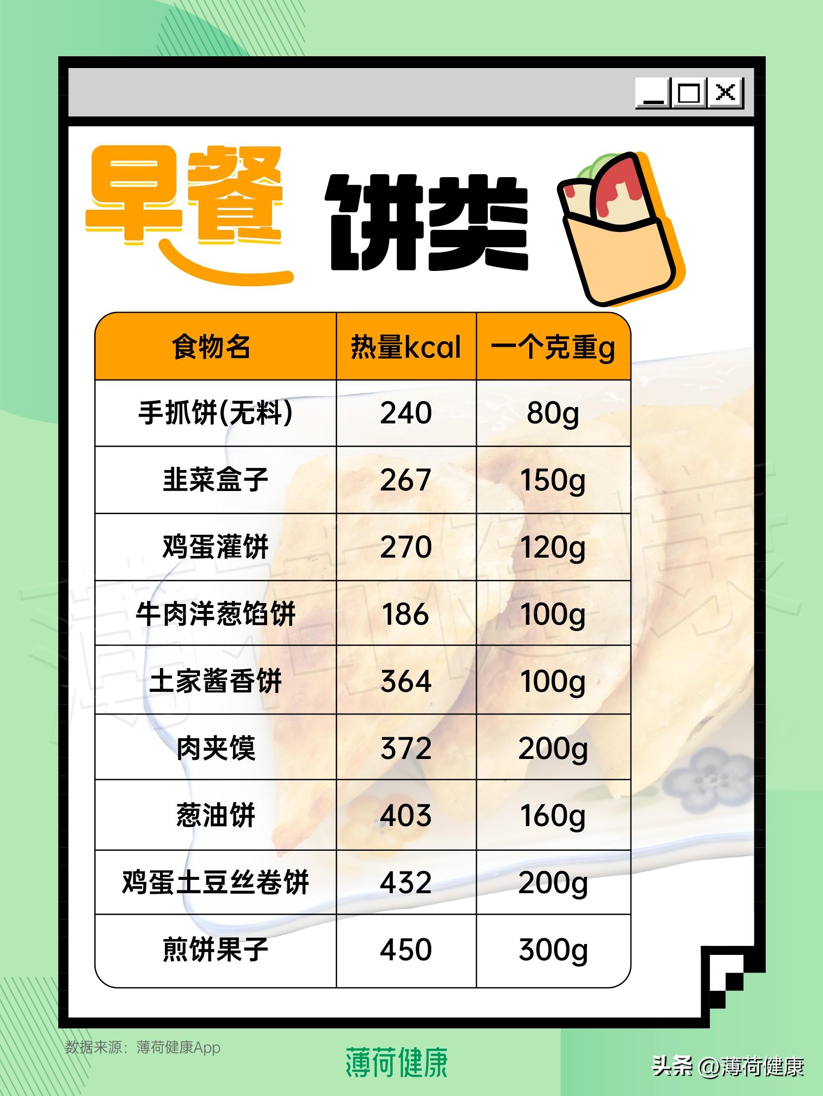 食品名称 热量(大卡/