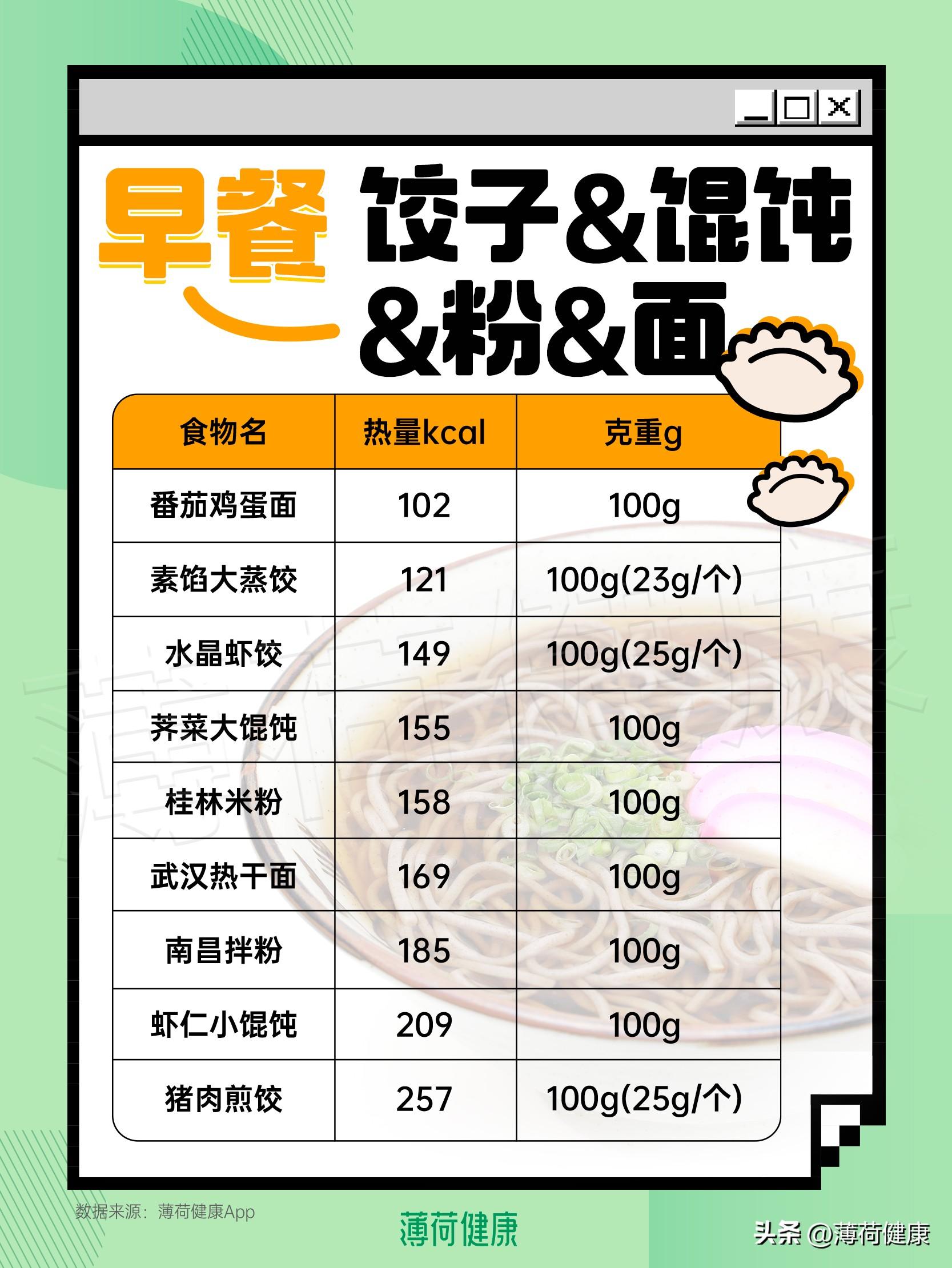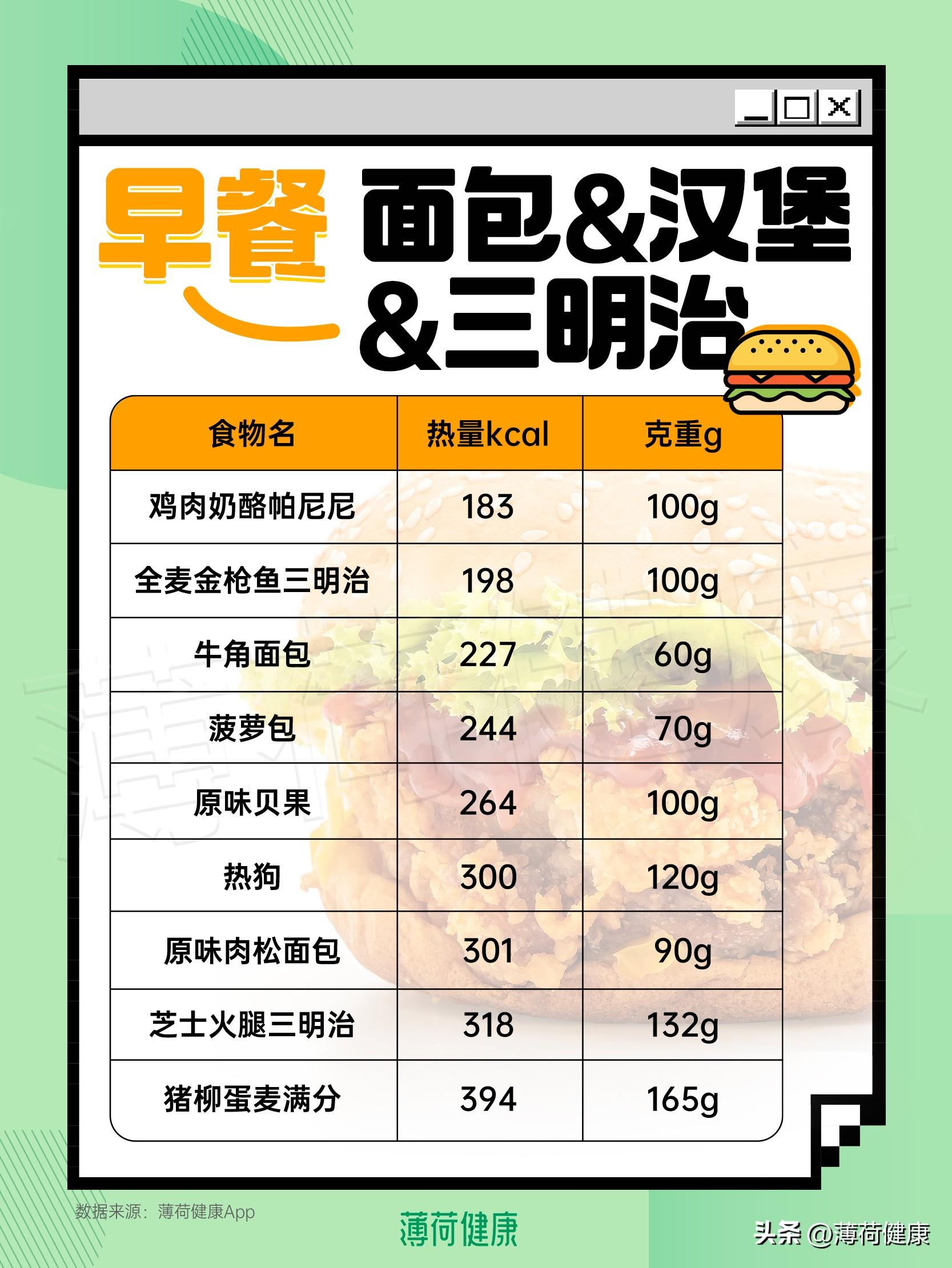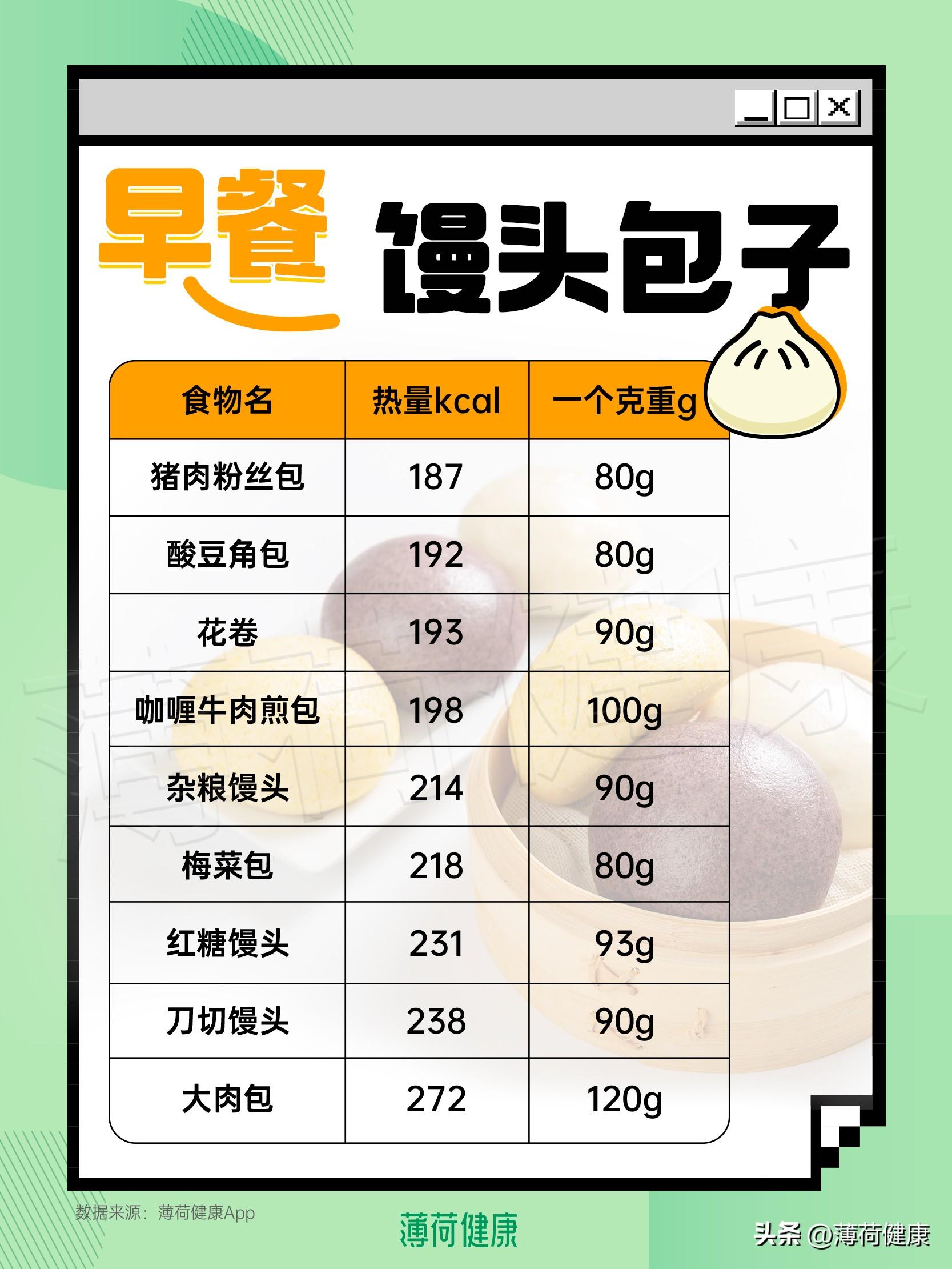 食品名称 热量(大卡/
