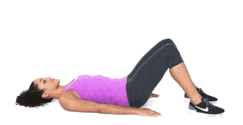 利用仰卧的姿势,仰卧在地面上,双腿弯曲,脚掌置于地面,支撑身体,双臂放在身体的两边,伸直手臂,手掌朝向地面。头部和上肢身体贴在地面上,向上挺起臀部,让腿部到胸部位置在一条斜线上。尽可能地做停留,再缓慢的下移,当臀部接近于地面时,再次向上挺起。
