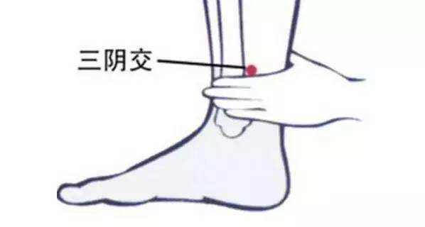 另一个穴位三阴交,是肝经、脾经、肾经三条「阴经」的交汇处。因此三阴交穴有一大特点,就是能够调节妇科方面的问题。女性的水肿、内分泌失调之类的病症,都可以按摩三阴交或血海穴。