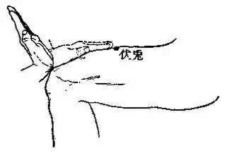 4.伏兔穴:位于膝盖正上方约8指横宽处(6吋)。