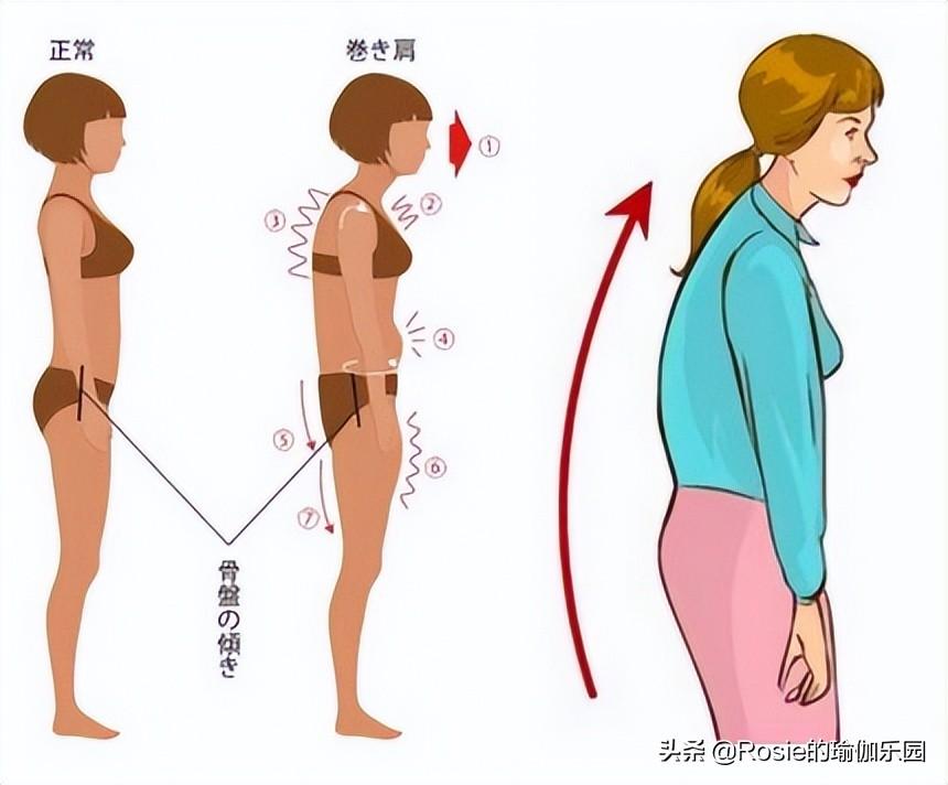 弓背塌腰,脖子前伸,脂肪更容易在肩背处堆积。