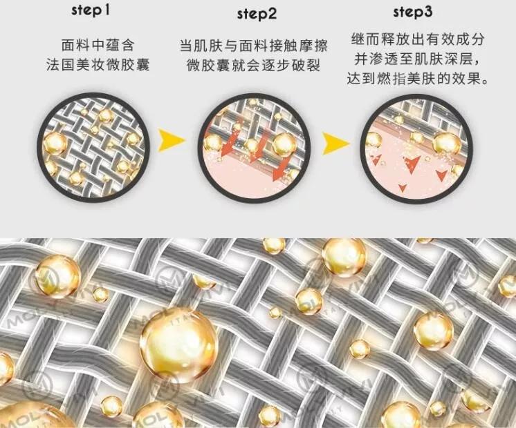 这种采用法国微胶囊技术的新型面料在肌肤与面料接触中释出胶囊中蕴含的瘦身成分,燃脂同时还有美肤果。
