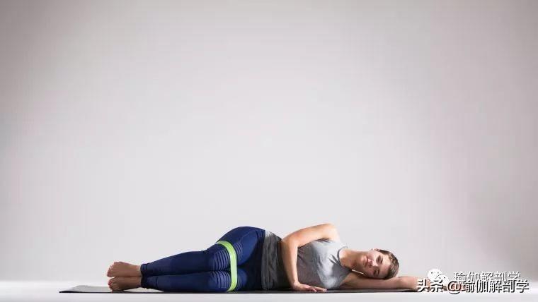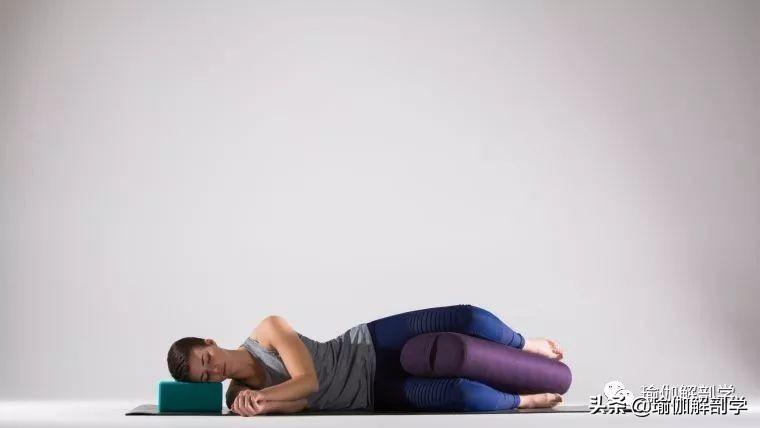 侧卧,双腿中间夹一个枕头,头部下侧放块砖、毯子或枕头做支撑,闭上眼睛,彻底的放松3-5分钟,换另一侧。