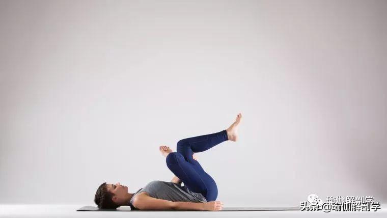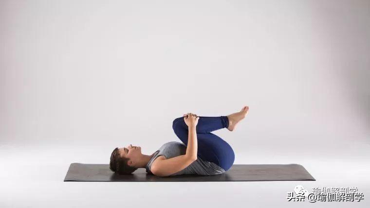 仰卧屈膝,将右脚放在左大腿上,抬起左腿想上靠近腹部,保持3-5个呼吸,换另一侧。