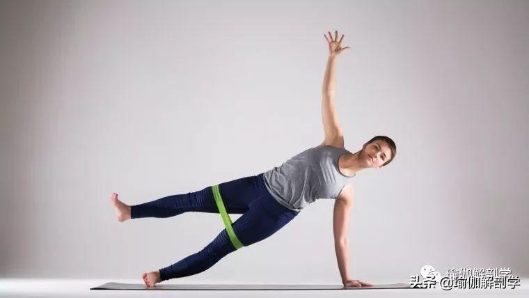 从斜板式直接过度到侧板式,收紧核心以保持身体的平衡和稳定,保持5-8个呼吸,换另一侧。