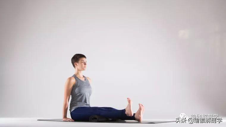 长坐姿,膝盖下方放毛毯,保持左腿稳定并伸展脊柱,将右脚跟抬起几英寸。保持3-5次呼吸,换另一侧,重复练习1-2组。