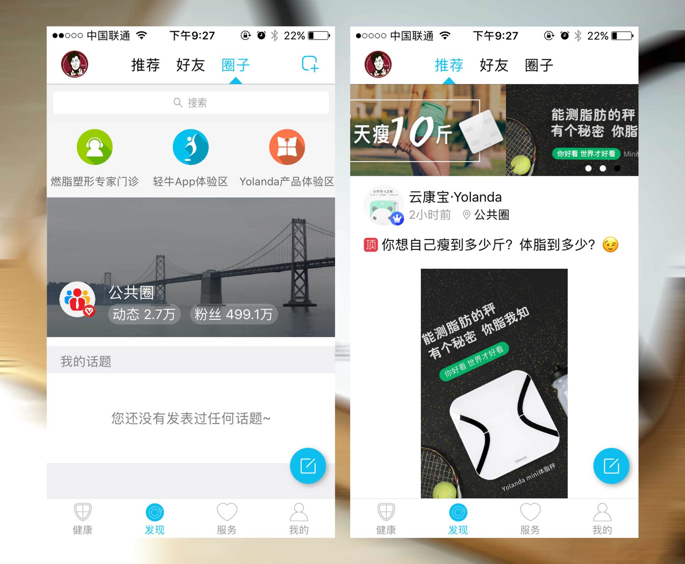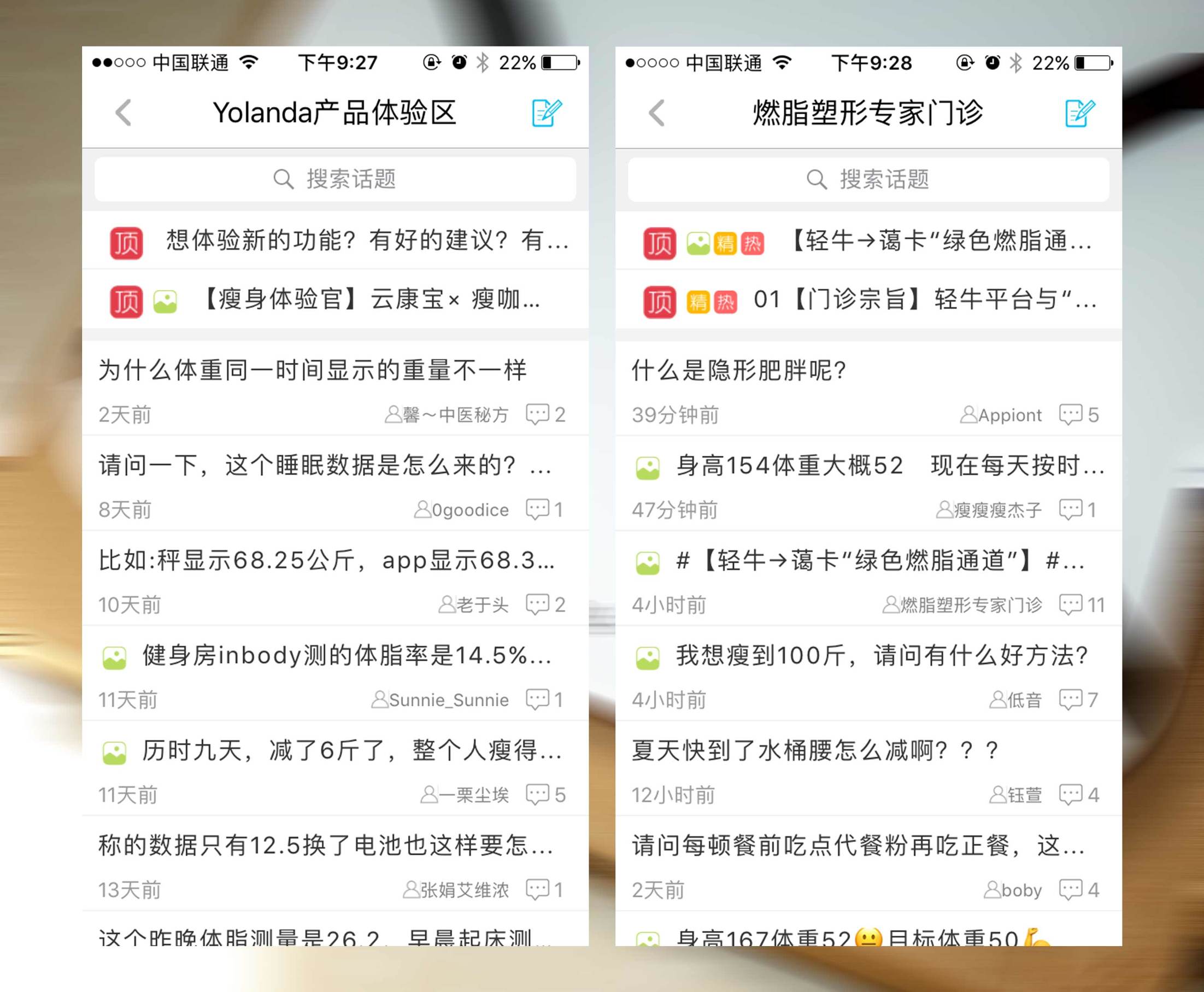 ↑我认为发现菜单做的十分不错,在这里有一个“圈子”的子菜单,里面有燃脂塑形专家门诊、轻牛app体验区、Yolanda产品体验区等不同的话题区,在这里可以随时阅览不同用户发表的各类帖子,而且还有专门的从业人员或者客服对问题进行解答。