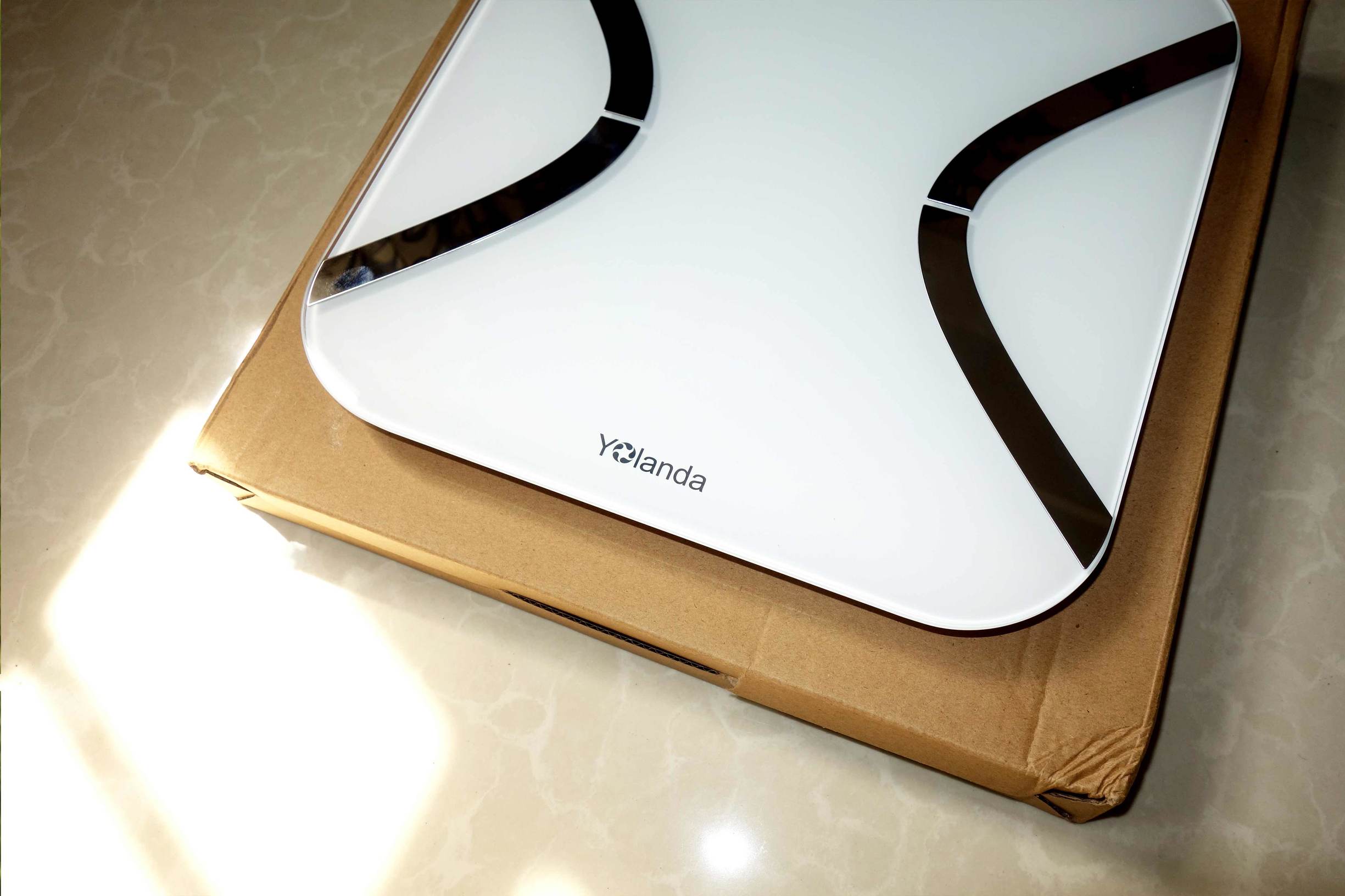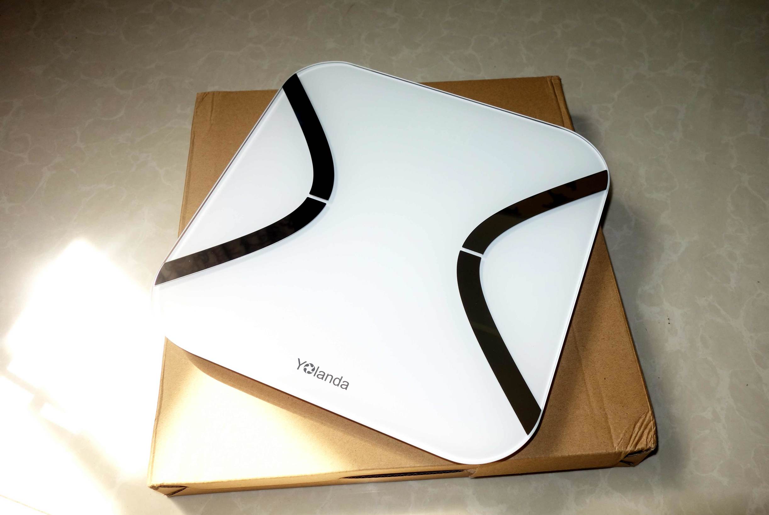 ↑褪去包装就是本次文章的主角——Yolanda体脂秤Mini,整个产品给我的第一印象就是实物比照片漂亮,简单的外形设计无需过多的装饰即能吸引眼球。