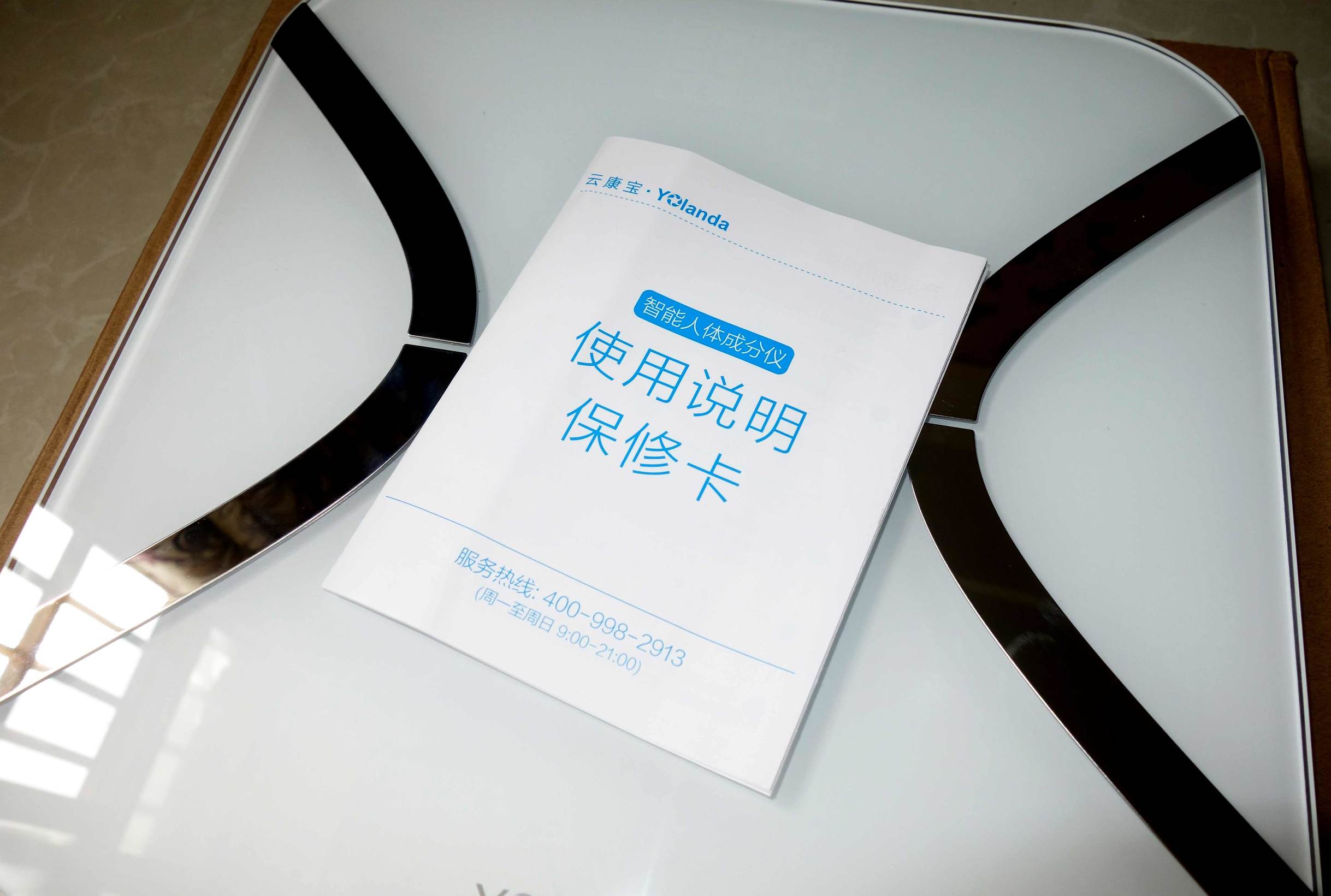 ↑随箱标配除了体脂秤本身也就剩几节电池与一本保修卡了,在保修卡里简单的介绍了体脂秤的正确使用方法、身体数据测量及app的使用注意事项等一些实际性的问题。
