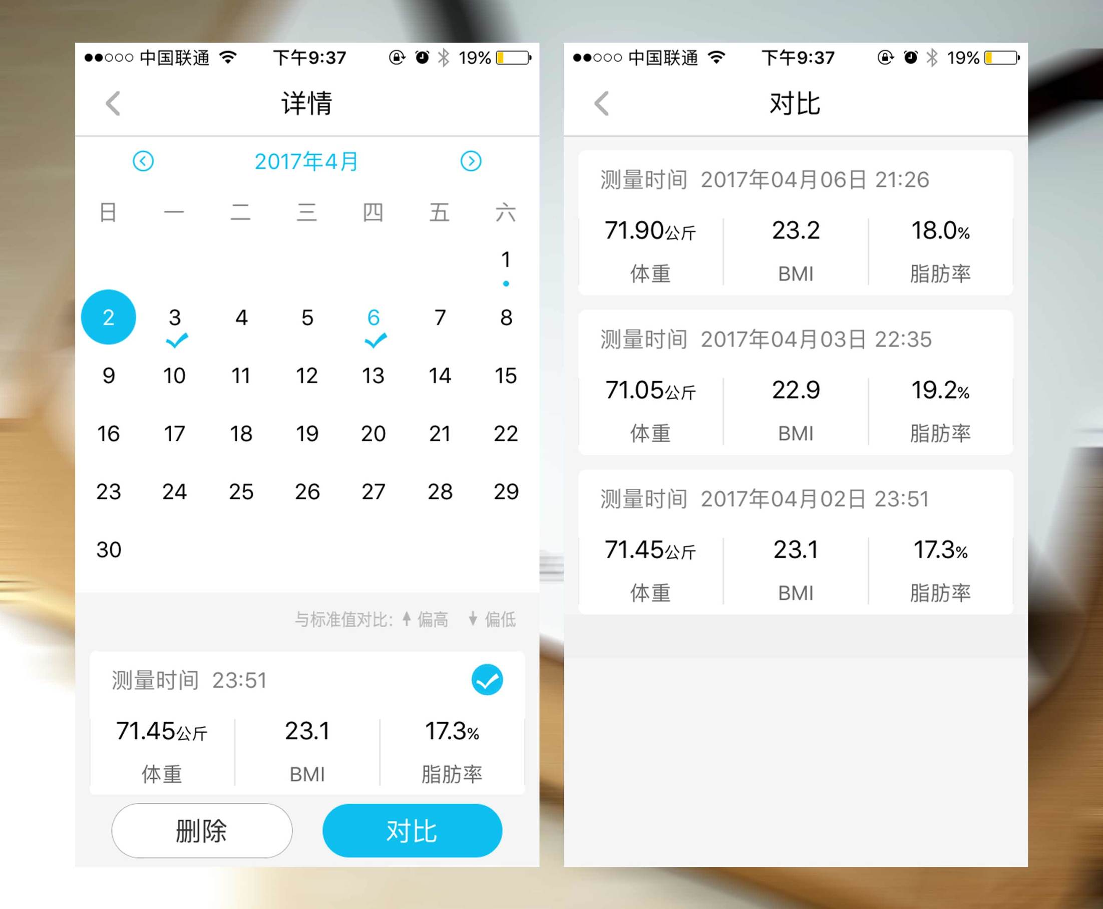 ↑如果一台体脂称仅支持测量体重与数据的话我想并不算是一个合格的设备,好在这台Yolanda体脂秤搭配轻牛app轻松实现了历史数据的存储与读取,这给健康减脂提供了很好的参考依据,我们可以很容易的选取多天、多次的测量数据进行一个详细的数据对比,随时掌握身体每天的细微变化。