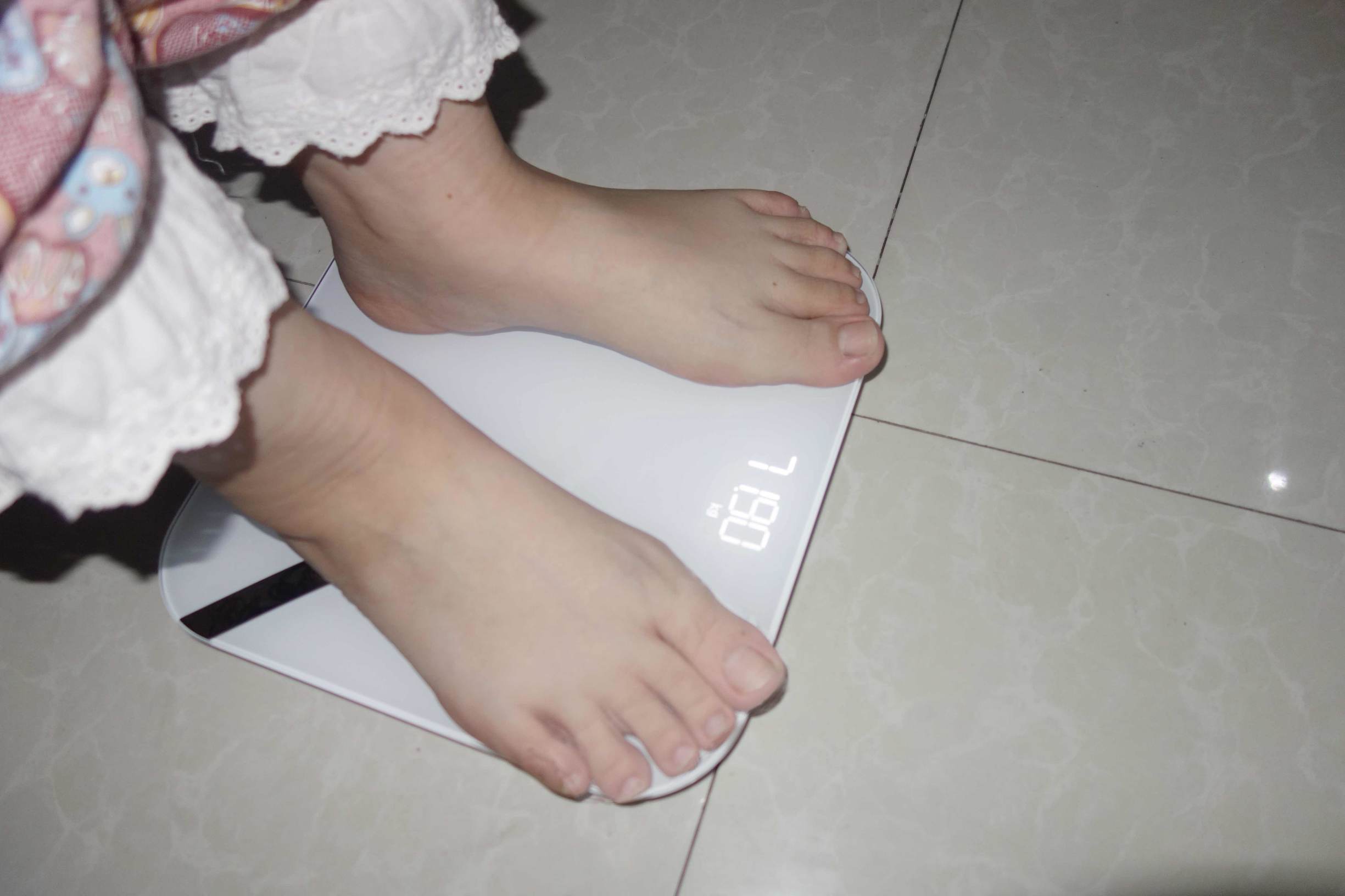 ↑使用过体脂称的都会知道在使用时要注意的一些事项,那就是在测量时要将秤放在平坦的地面上,这样才能使测量到的数据更为;另外一定要光脚,不要穿袜子、穿鞋,否则是测量不到脂肪等数据的,而且为了数据的准确性,衣服也是能少穿就少穿。