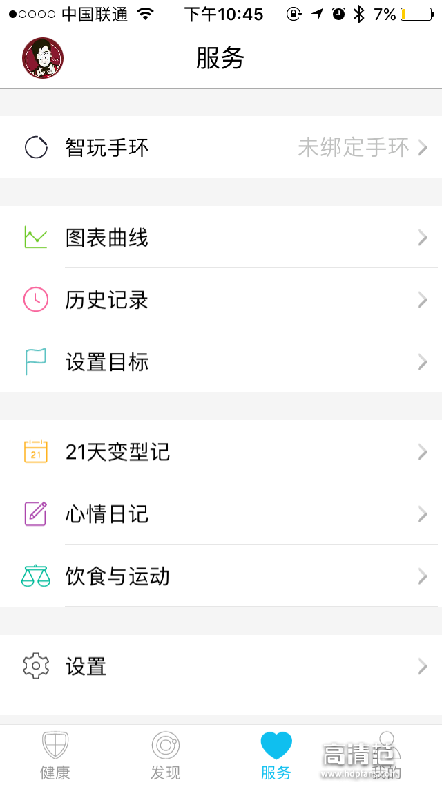 ↑服务菜单项,在这里可以查看到身体数据图表曲线、设置减肥目标、设置饮食与运动等各方面。