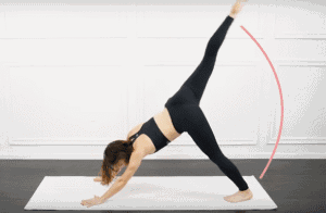 尽可能的向后延展腿部,并如图所示进行运动,可以用于帮助更好的紧塑臀型。你懂的!