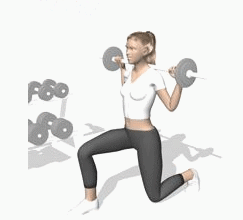 箭步蹲主要刺激臀大肌和股四头肌,但是许多健身的朋友动作不规范,以致训练果不。肩杠杠铃,走出支架,躯干保持紧张,右腿向前适当跨步,要求下蹲时膝关节不超过脚尖,下蹲至右大腿与地面平行,然后蹲起还原。此动作对力量、协调性、灵活性要求都很高,是各项竞技运动员的力量训练动作,因为它能使人具备较强的身体控制能力和力量素质。