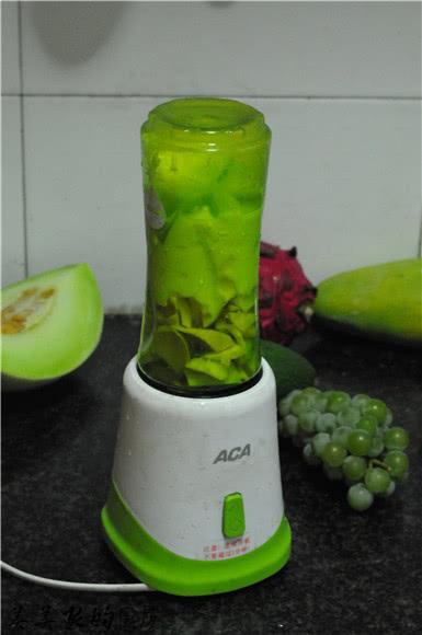 首先咱们来做果昔,夏日炎炎,喜欢绿油油的颜色了,我选择了牛油果和甜瓜,将牛油果切开后去核,再稍微切成小颗粒状,便于果汁机打得更细。