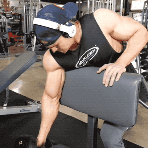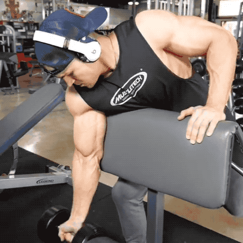 在练二头肌时,身体靠在斜板上并将手臂自然垂下时,可以让二头肌的肌纤维彻底拉开。如此在练习曲臂弯举时,二头肌外侧长头所受到的刺激可以更广。同样地将上臂高举过肩,三头肌的肌纤维也会被拉开。所以在练哑铃三头肌伸展时,三头肌长头的刺激范围会更广。