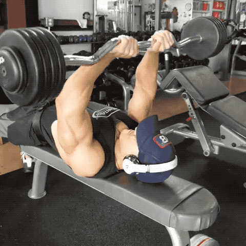 动作二:仰卧杠铃臂屈伸