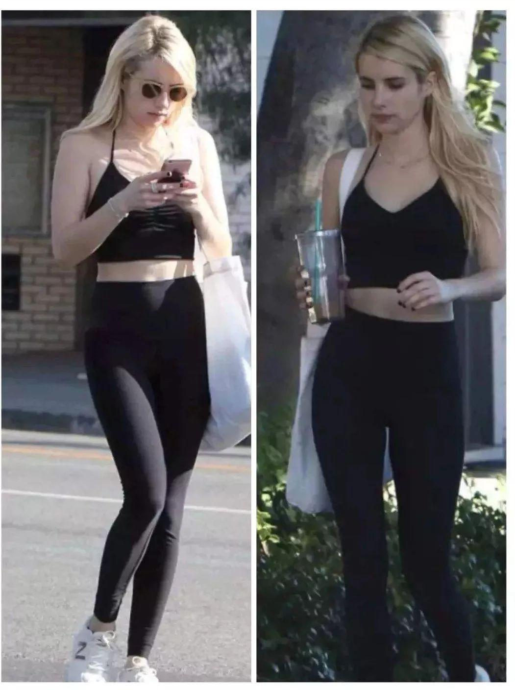 好莱坞女星Emma Roberts,也爱穿瘦腿裤,吊带背心搭配瘦腿裤,小蛮腰、大长腿通通露出来。