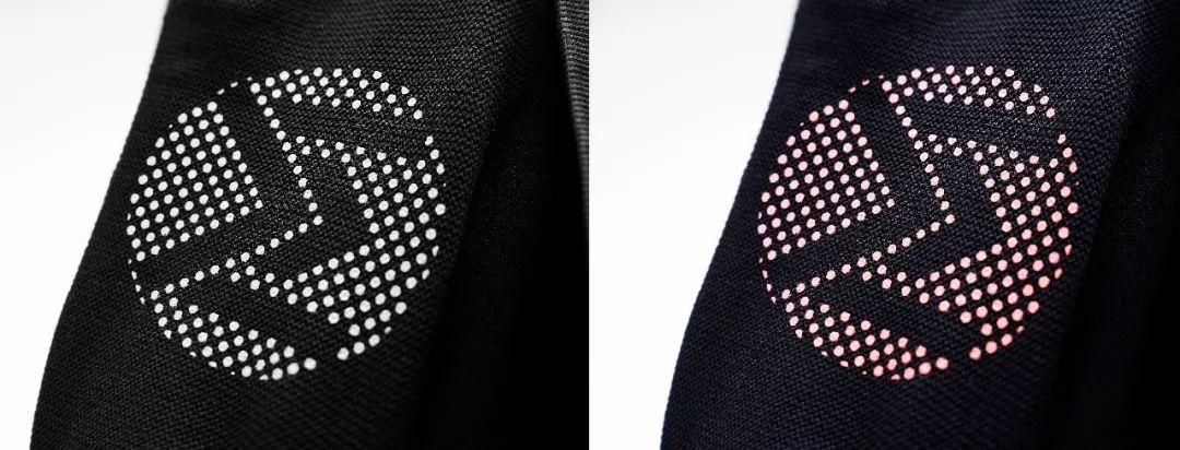 只要身体温度足够高,腹部的红色M的LOGO就会变成白色,就是说只要身体在燃脂,LOGO就会变色,所以说这和市面上一般的瘦腿裤不同,在燃脂时是肉眼可见的,见证你每一天确实是在变瘦!