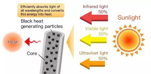 在纺纱的过程中,特别加入了含有远红外功能的粉体,混合均匀后,抽丝纺纱而成。这种将远红外线编织到面料中,这种内部含有矿物添加剂的尼龙6.6纤维,使得远红外线的功能更突出,而且不会因水洗而减弱。