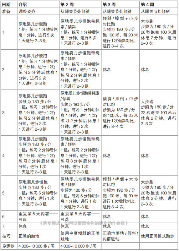 下面给大家推荐一个耗时4周的训练方案,它是在构建正确模式的基础时期中,正确的模式训练进程。改正错误模式,帮助提高跑步率,一起来看看吧。