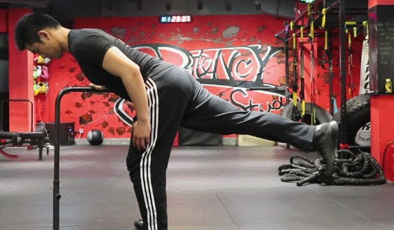 第二步是浮动的燕式,在静态燕式的基础之上,让自己的身体微微上下平移,感受臀部的发力,千万不要过度弯曲膝盖,完成十五次以上,这个时候就会的酸爽了。