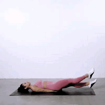 动作六:仰卧卷腹交替摸脚 进行10-12次,重复4组
