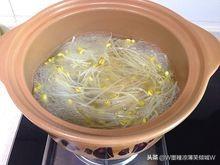 做法:1.黄豆芽摘洗干净。2.牛肉切丁。3.烧热油(香油味道好),炒香蒜片。4.放入牛肉丁炒至变色。5.放入豆芽。6.倒入骨...