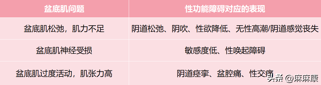 尤其是球海绵体肌,它位于YD两侧,对维持紧缩度起着重要的作用。当盆底肌出现以下问题时,具体表现如下: