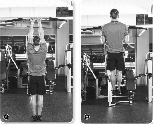 3.达到高活动范围(b)后,在控制下降低身体,直到双臂完全伸直。重复进行。