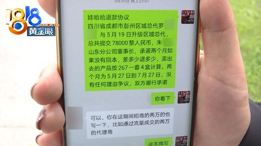 罗女士介绍,当时是山东的代理商朱某邀请自己加盟的,她花了7万8拿下了成都彭州区的总代理。在微信聊天中,罗女士草拟了一份退款协议,写明:山东分公司董事长朱某某,承诺两个月如果没有回本,差多少退多少等等。当时朱某某的回应是“可以”。