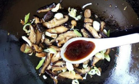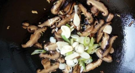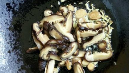 7.起锅加入油和八角小火煸炒香,加入姜和香菇煸炒出香味。