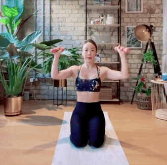 跪姿,核心启动,腰背挺直双手屈肘,手肘贴近两肋吸气,胸腔打开,脊柱延展呼气,双肩带动小臂外旋动态练习15-18次体式06、