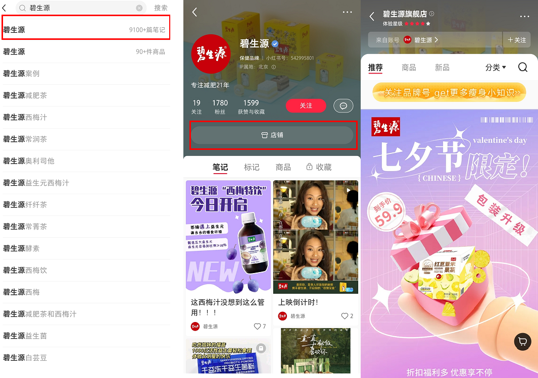 另外,碧生源开通小红书店铺,方便用户能直接在小红书平台下单,以此降低用户决策,提高变现可能性。