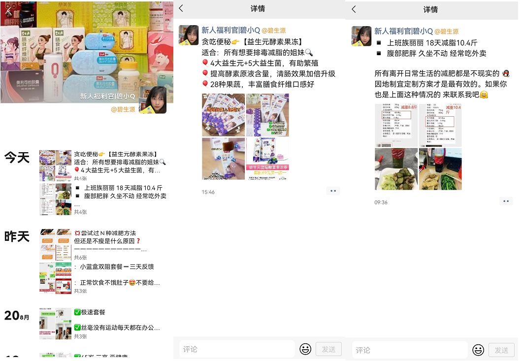 朋友圈内容:要以产品种草、减肥案例、减肥科普、产品活动内容为主