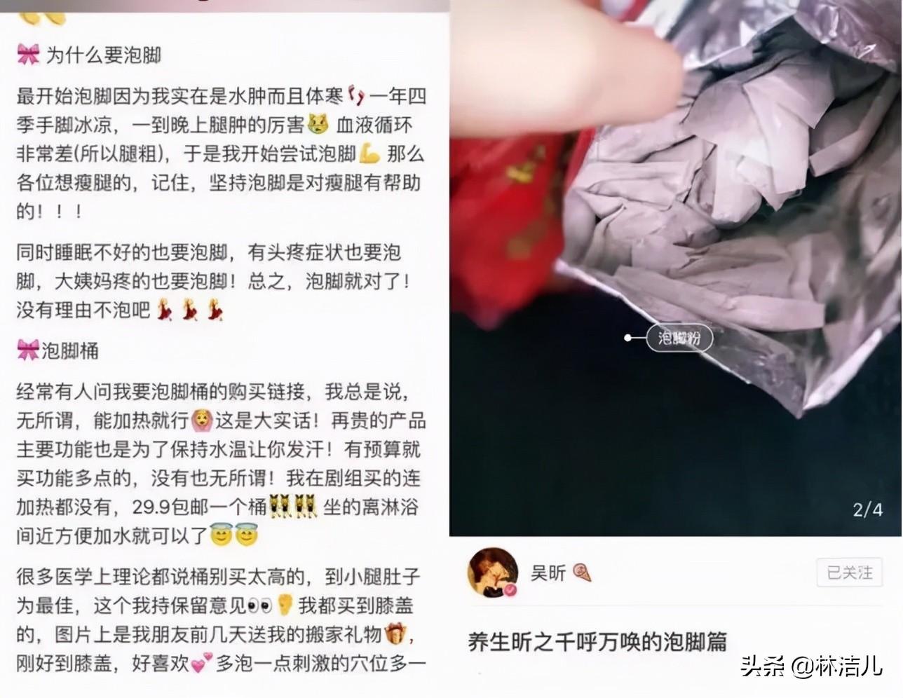 针对容易胖的小腿,她还独创了瘦小腿的方法,就是泡脚。一开始,她本来只是为了去水肿和解决手脚冰凉的问题,没想到却意外收到了瘦腿的功,吴昕还在社交平台分享了泡脚的心得,她也表示,泡脚瘦腿一定要坚持才有,加什么东西促发汗,都不如一个星期坚持3次重要。