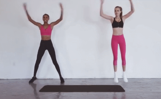 这个动作是热身动作,可以快速提升心率,让四肢跟腰腹一起参与锻炼,激活身体肌群,提升身体的灵活性,同时提升活动代谢,让你慢慢瘦下来。每次进行1-2分钟,重复5组,可以让你保持燃脂状态。