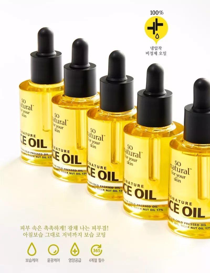 来自有名美容师推荐而获得口碑的精油品牌So’natural推出的面部精油产品,在韩国消费者中间受到追捧。根据品牌方介绍,该产品内含30%的黄金荷荷巴油、19.8%的向日葵籽油以及17%的虎坚果油,对于肌肤的吸收力和保湿力都有一定的增强果。