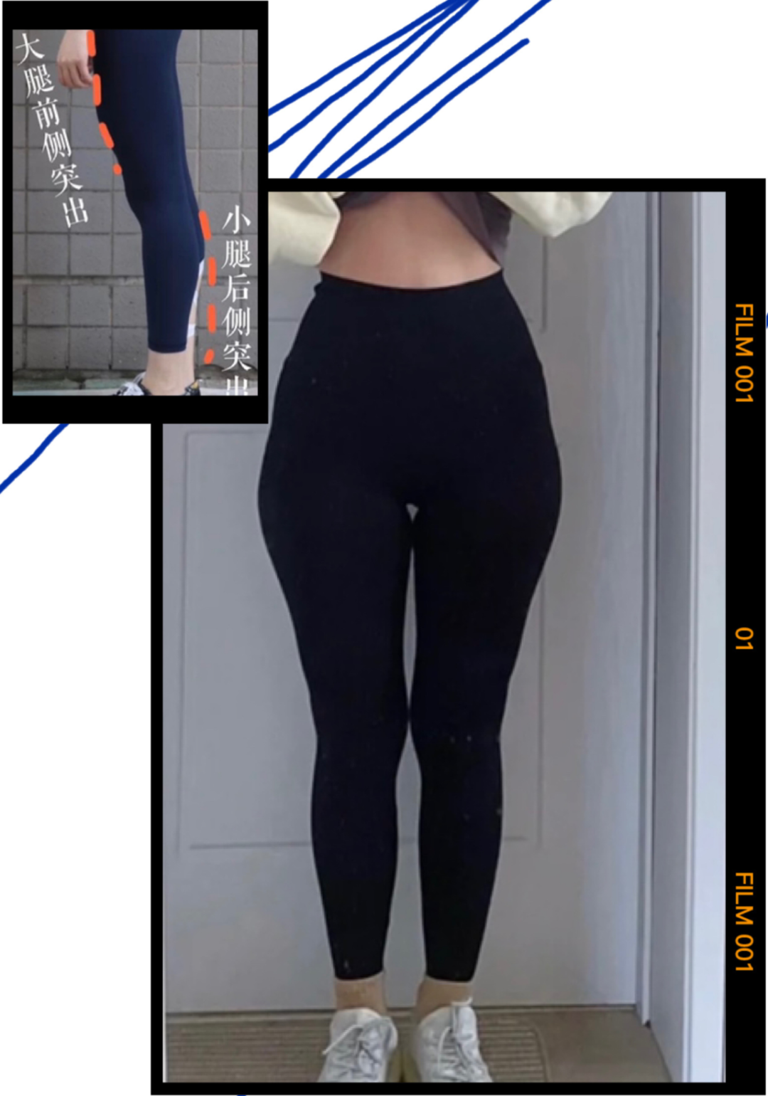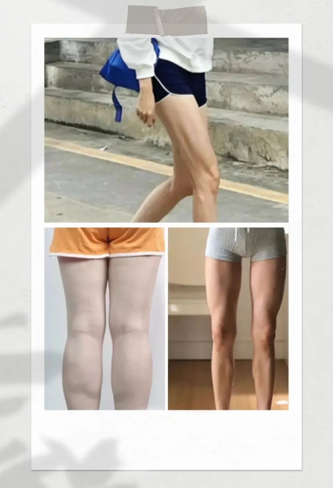 而且还不仅仅是显腿短这么简单,假胯宽还会慢慢让你的腿型变成X型腿,大腿内扣导致小腿外翻,正面来看腿部线条像个“3”。