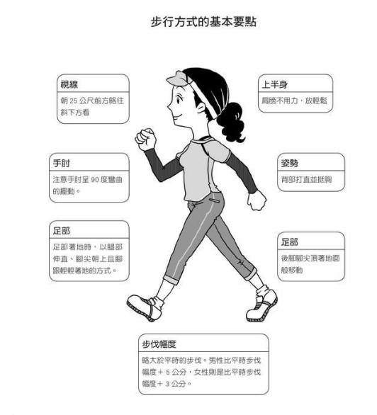 首先挺直背部,微微抬头,整个人都要向上提,像拉伸一样。眼睛朝前看,不要去看地面,手臂放松,肘部弯曲,根据行走的节奏跟随身体摆动。行走时要脚尖起跳,脚后跟落地,有节奏地进行快走。