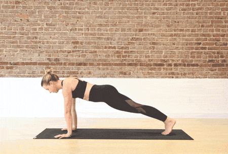 吸气,手臂伸直进入下犬