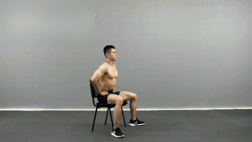 坐在椅子上将脚抬高,能锻炼腹肌和大腿。