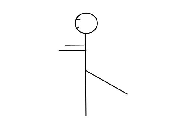 Step2:抬起一条腿高,直到你的大腿与地面平行。